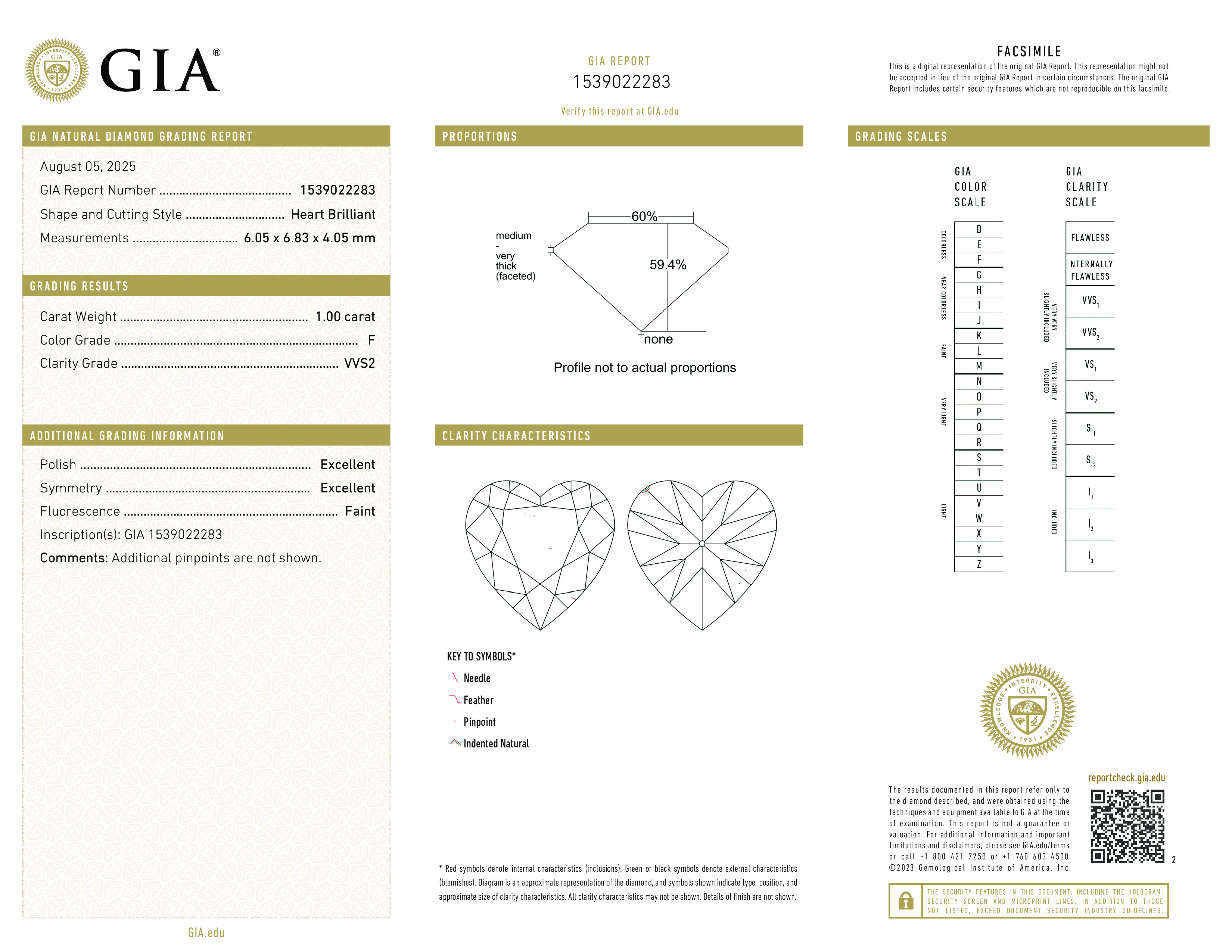 Роскошный бриллиант в 1.00 карат, формы сердце . Размер 6.05x6.83x4.05 полностью соответствует установленным стандартам для этой формы и массы камня. Небольшая флюоресценция находится в рамках нормы. Выгодная цена. Хорошая ликвидность на вторичном рынке.