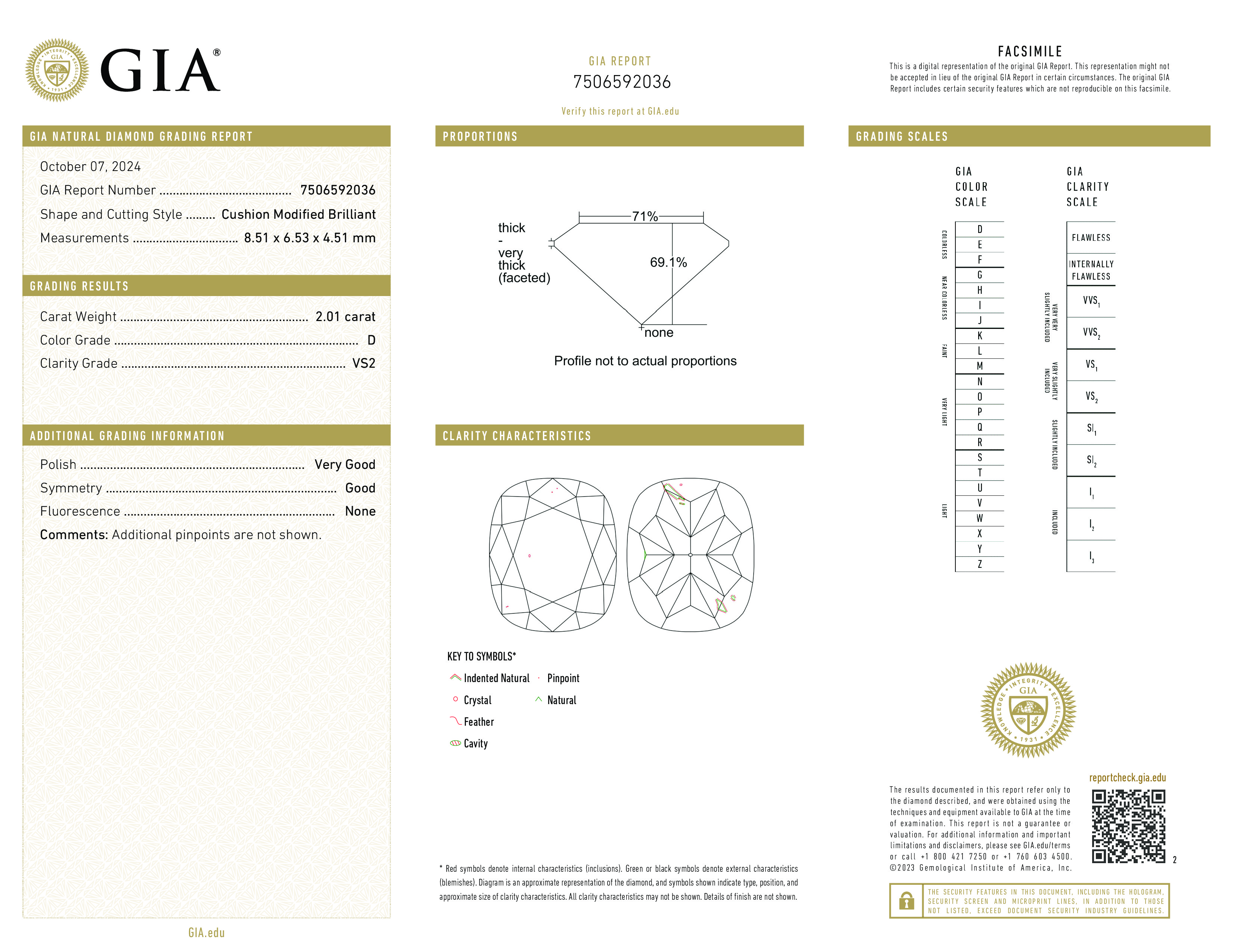 Фантастический бриллиант в 2.01 карат, формы кушон . Размер 8.51x6.53x4.51 полностью соответствует установленным стандартам для этой формы и массы камня. Флюоресценция полностью отсутствует, что встречается лишь у 15% от всех добываемых бриллиантов. Фантастически выгодная цена. Высокая ликвидность на вторичном рынке.