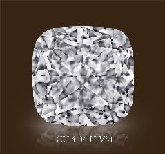 Экстраординарный бриллиант в 4.04 карат, формы кушон . Размер 9.01-8.75x5.86 полностью соответствует установленным стандартам для этой формы и массы камня. Флюоресценция полностью отсутствует, что встречается лишь у 15% от всех добываемых бриллиантов. Справедливая цена. Высокая ликвидность на вторичном рынке.