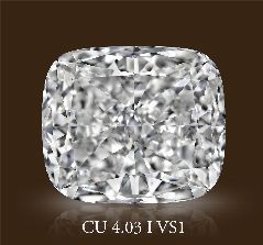 Экстраординарный бриллиант в 4.03 карат, формы кушон . Размер 10.06-8.65x5.53 полностью соответствует установленным стандартам для этой формы и массы камня. Флюоресценция полностью отсутствует, что встречается лишь у 15% от всех добываемых бриллиантов. Справедливая цена. Высокая ликвидность на вторичном рынке.